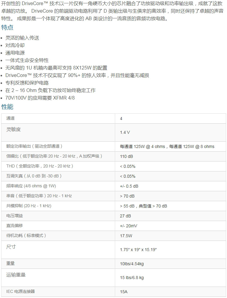 四聲道、125W @ 4Ω 功放