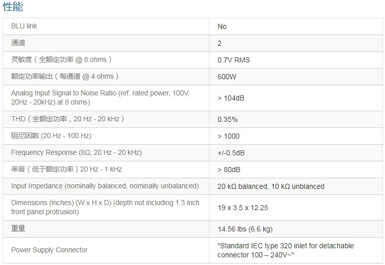 模擬輸入,2通道,600W/輸出通道,功放