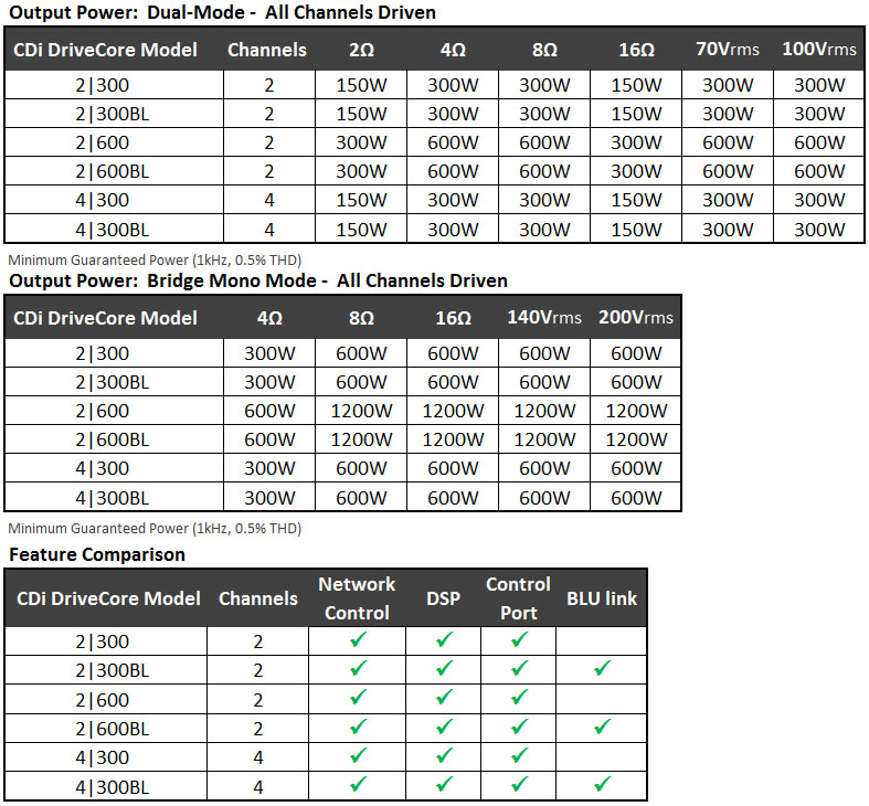 CDi DriveCore系列掀起了功放的革命性創(chuàng)新,呈現(xiàn)了令人刮目的高性能、豐富功能以及成本優(yōu)勢(shì)的完美組合。CDi DriveCore采用哈曼旗艦固定安裝功放(Crown DriveCore Install系列)技術(shù),簡(jiǎn)化了功能,幾乎適用于任何中小型固定安裝、電影院、零售店等應(yīng)用場(chǎng)合。CDi DriveCore系列設(shè)計(jì)旨在各種應(yīng)用場(chǎng)景中運(yùn)用自如,擁有2或4通道配置,以及網(wǎng)絡(luò)控制/監(jiān)控、高電平DSP、前面板界面等,且無(wú)需外接變壓器也能驅(qū)動(dòng)高達(dá)100Vrms定壓模式的揚(yáng)聲器。此外,使用BLU link(BL模式)還可改變通道數(shù)/輸出功率,實(shí)現(xiàn)了通過(guò)哈曼數(shù)字音頻總線收發(fā)通道的功能。