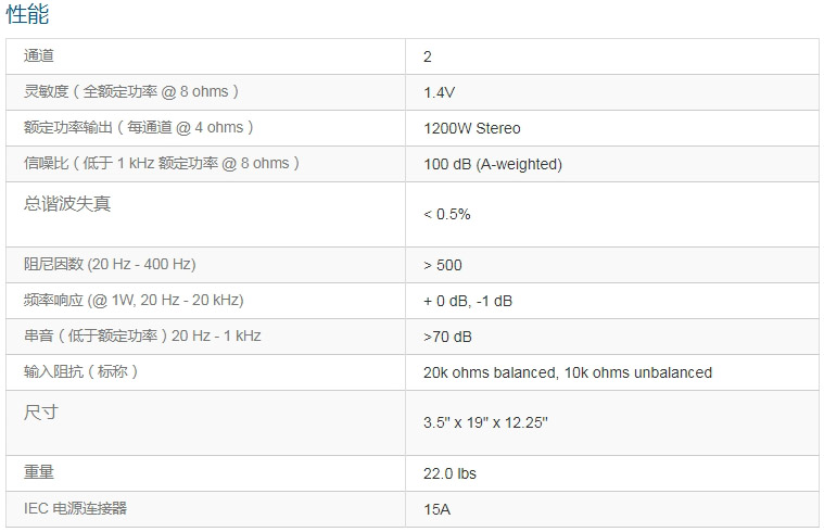 雙通道、1200W @ 4Ω,支持70V/140V定壓的功放