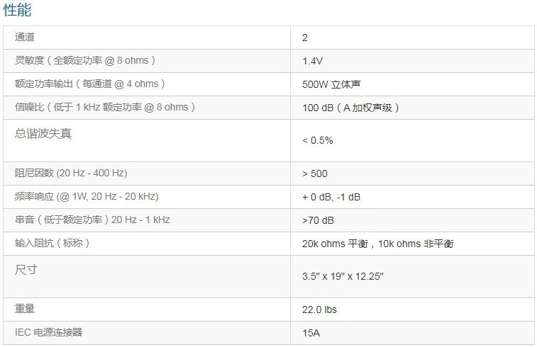 雙通道、500W @ 4Ω,支持70V/140V定壓的功放
